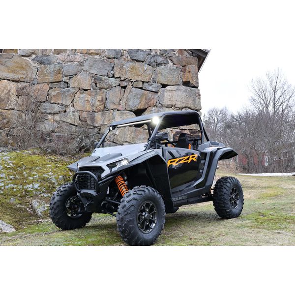 Den glatte fronten, som i motsetning til andre LED barer som har en kant rundt, forhindrer snø, is, sand og støv fra å samles på linsen. I tillegg har en ny type reflektorteknologi redusert blending, ettersom lysdiodene er rettet fra toppen til reflektoren. Lyset er egnet for både 12V og 24V systemer. Et behagelig og nøytral 5700k fargetemperatur sørger for at lyset ikke er ubehagelig mot øynene i lengre arbeidstider også. Monteringstilbehør er inkludert i pakken. Garanti på 24 måneder.