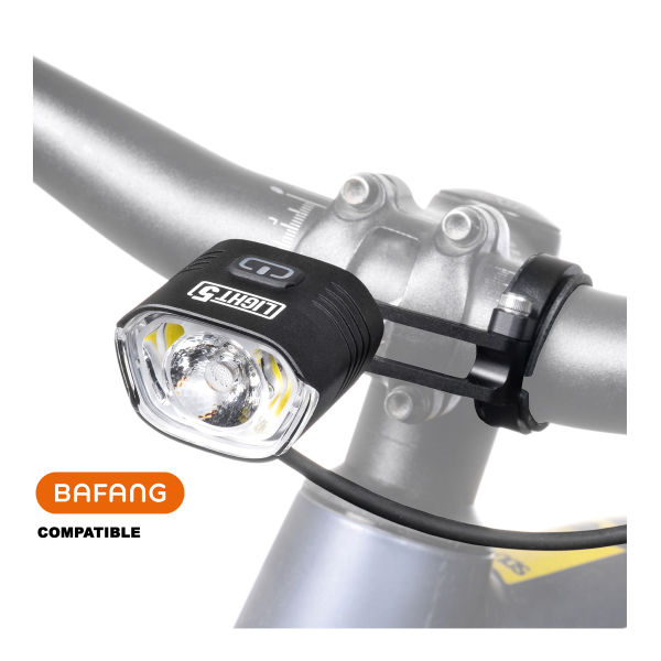 Light5 EB1000 Bafang er en lampe for elsykler med 1000 lumen lysstyrke. Lampen drives direkte av batteriet til elsykkelen. 1000 lm lysstyrken som tilbys av EB1000, tre forskjellige effektmoduser og har en bred og langt opplyst stråle fungerer utmerket for sykling i trafikk, så vel som på mørke grusveier eller skogoverganger. I tillegg til de tre grunnleggende egenskapene, har EB1000 et automatisk fungerende, veldig stilig kjørelys som fungerer på dagtid. Lampen skifter automatisk lysmodus fra frontlysene til baklyset, f.eks. Når du beveger deg til en opplyst gate, og tilsvarende i en mørk seksjon, returnerer lampen strømmen til frontlysmodus. Med tre effektmoduser kanlysutbyttet alltid justeres for å passe situasjonen, slik at ved stille kjøring bruker lavere lysytelse mindre batteristrøm, og i raskere tempo kan lysytelsen økes for å forbedre synligheten. Den kompakte lampen kan monteres diskret og elegant på alle elsykler. Vekten og størrelsen på lampen påvirker ikke funksjonene eller bruken av sykkelen.