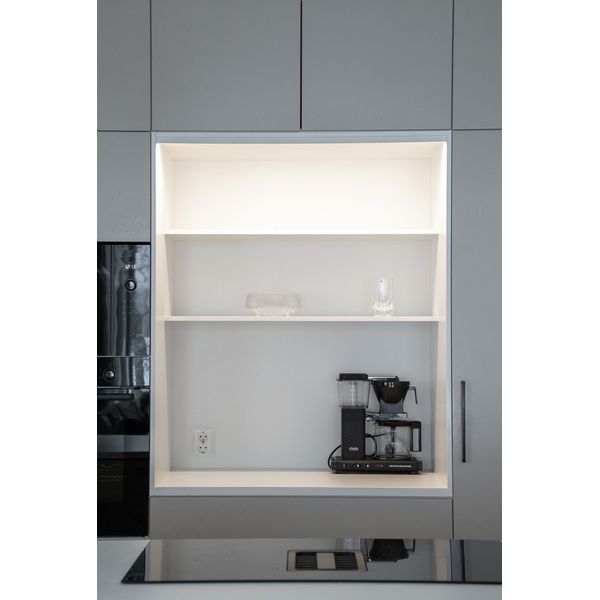 Tips: Du finner en pakke som passer til lyse skap her: LED-stripepakke Skapbelysning AGGE 24V - Hvit profil