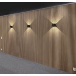 AGGE Square Two Way Adjustable er en moderne utenpåliggende veggarmatur som belyser kanten av veggen både direkte oppover og nedover. Armaturen har trinnløst justerbare klaffer rundt LED-lampene, slik at lysets åpningsvinkel kan justeres mellom 1° og 90°. Den justerbare lysvinkelen gjør armaturen egnet både som en svært presis spotlight og til allmennbelysning over et større område. Armaturen drives av to fastmonterte 3 W LED dioder, som hver produserer 345 lumen. AGGE Square Two Way er et utmerket valg for belysning av verandaer, terrasser og gårdsrom, men den skandinaviske stilen og det lineære designet gjør den også ideell til innendørs bruk, for eksempel som allmennbelysning i korridorer eller for å fremheve interiørdetaljer.