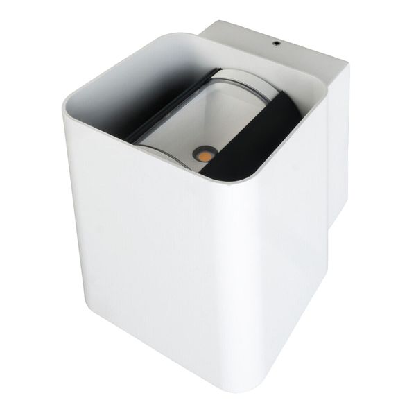 Kompakt vegglampe som lyser både oppover og nedover, for eksempel for å fremheve veggflater eller strukturer i en fasade. Lysstyrke 860 lm spesifisert av produsent, fargetemperatur 3000 K. Tilgjengelig i hvit eller antrasitt.